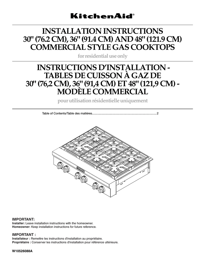 KitchenAid Cooktop manuals, user guides and free downloadable PDF manuals and technical specifications. We have 259 KitchenAid Cooktop manuals covering 15 models available for immediate free PDF download. This video provides step-by-step instructions for safely installing a Kitchenaid Gas Downdraft Cooktop (model #KCGD506GSS). Additional cooktop repair... This KitchenAid Job Aid "Flush-Mount Gas Cooktop" (Part No. 4317428), provides the In-Home Service Professional with information on the installation, operation, and service of the Flush-Mount Gas Cooktop. For specific information on the model being serviced, refer to the "Use and Care Guide... In preparation for a future post in which I do some