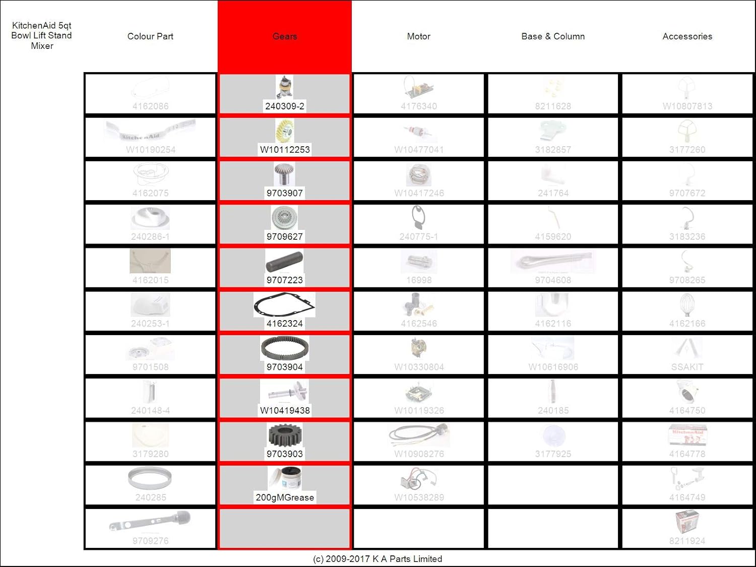 Replacement Black Latch Lever (9709280, 9709267) for KitchenAid Tilt-Head Mixer (Artisan, KSM90, Classic, K45, K45SS etc) 4.8 out of 5 stars 14 4.95 4 . 95 8.95 8.95 Buy KitchenAid Mixer Parts. Fastest Shipping - Low Prices. Search By Part Number, Or Model Number And Find The Parts You Need Fast. KitchenAid Compatible Mixer Feet (5-Pack) - Universal Replacement Rubber Feet for KitchenAid Stand Mixers - Replacement for 4161530 and 9709707 Foot - By Impresa Products 4.8 out of 5 stars 492 $7.99 $ 7 . 99 $14.99 $14.99 KitchenAid KSM150PS Artisan Tilt Head 5 QT. STAND MIXER Parts.