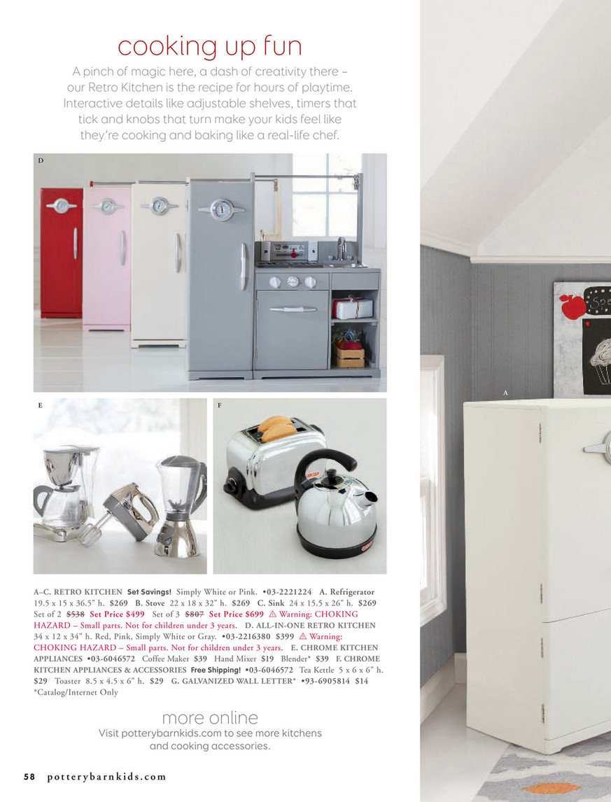 Our retro kitchen offers everything budding chefs need. Complete with a sink, icebox and oven, it has a fun retro design with lots of interactive features like adjustable shelves, timers that tick and knobs that turn. HOW IT IS CONSTRUCTED Expertly crafted of MDF (medium density fiberboard) with metal and plastic details. Shop retro kitchen from Pottery Barn. Our furniture, home decor and accessories collections feature retro kitchen in quality materials and classic styles. Pottery Barn / PB Modern Baby + Kids / west elm / Williams Sonoma. Pottery Barn / west elm / Williams Sonoma. ... Complete with a