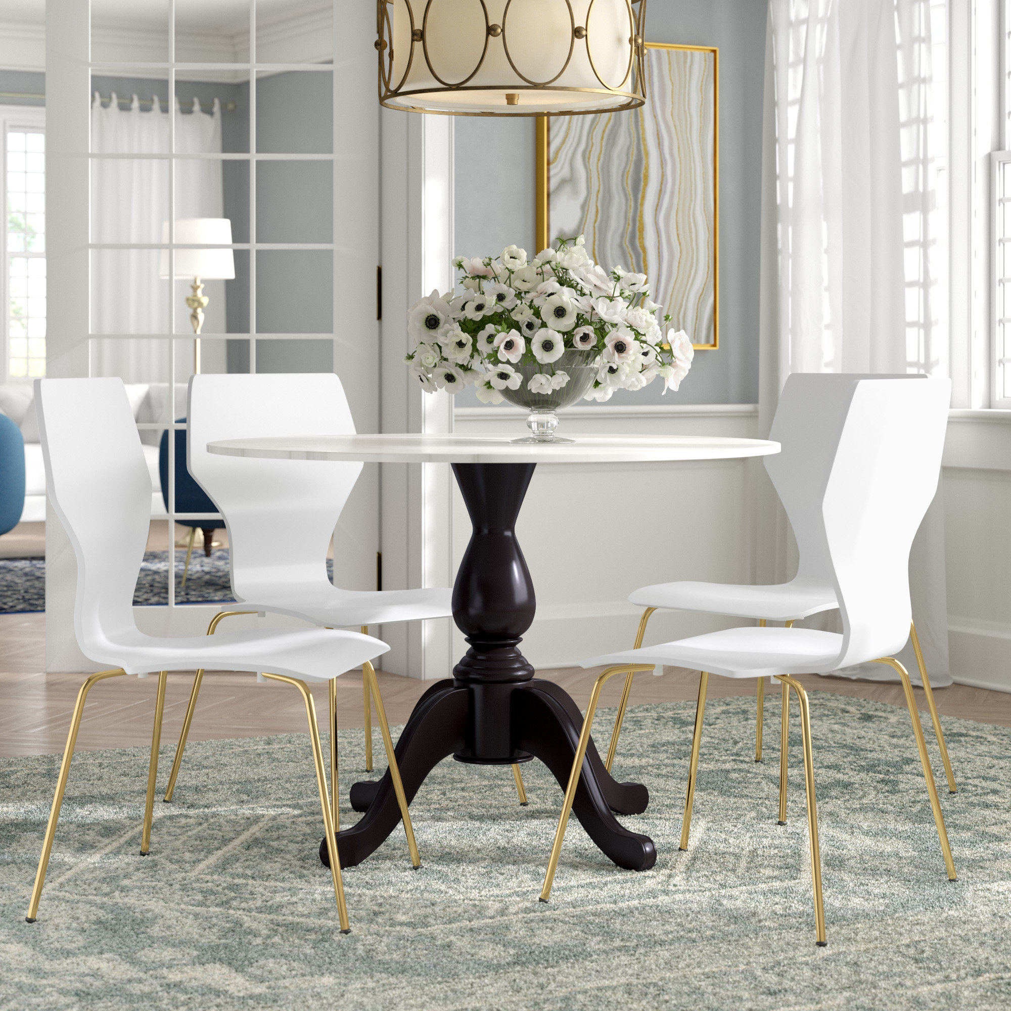 white kitchen dining room combo